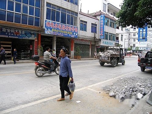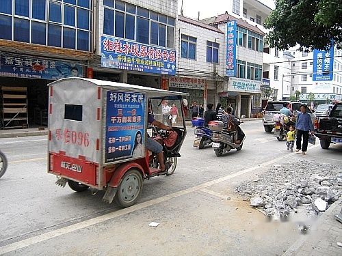 乐业没有工业,手工业。城里就靠旅游和房地产。所以满街你看到满街跑的就是三轮摩托车,街道两旁开的商店都是建材,家具店。