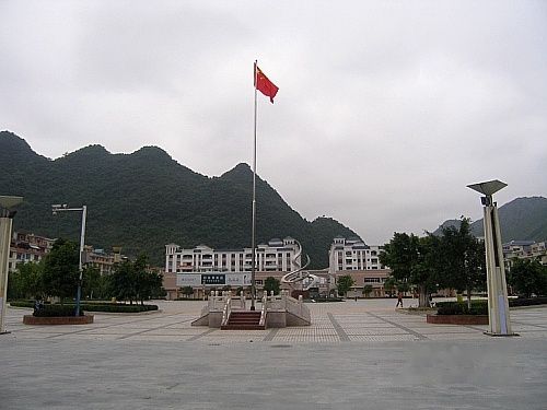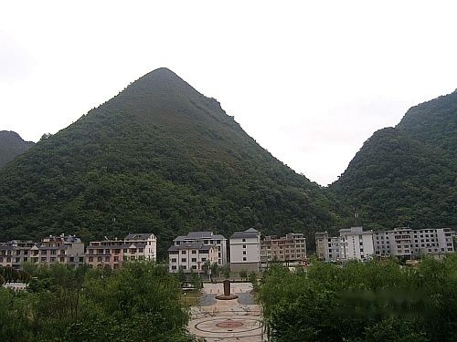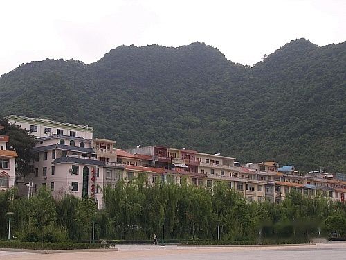 一出乐业新汽车站,便看到一条笔直的马路,马路的左侧就是山,马路的右侧有一排一字排开的楼,楼后就是山。乐业是夹在山中间的一块狭长的平地。乐业虽是县,但县城很小,比北方一个镇还小很多。人口自然也少。