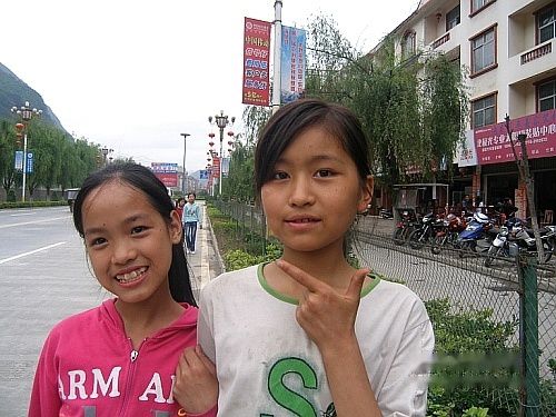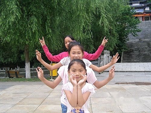 我不由的举起了相机……,可是被她们发现了,但是孩子们一点也不拘束,摆着POS让我照……