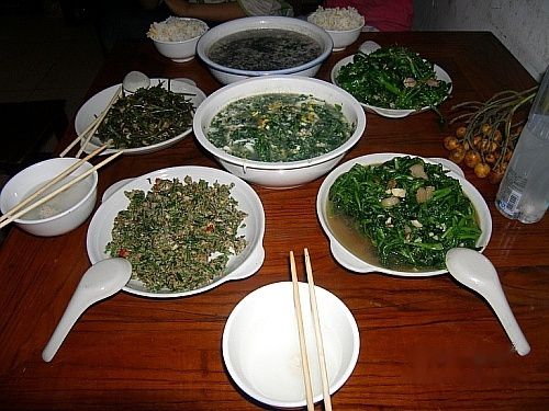 2个孩子和我一起在市场买菜,买了一斤肉,8个鸡蛋,青菜全是山野菜(这是较贵的菜,当地人也认,没污染那),也是北方没有的!
