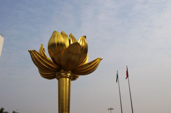 连续打的还是让我有点心痛了,出了郑家大屋,还是选择了坐公交车,因为下一站是去金莲花广场,比较好找。而金莲花广场的功能与香港的金紫荆广场是一样的。不同的是澳门这边看起来要寒酸点,周围还有些开始破败的居民楼,要是在内地这样的地方早就因为面子工程给拆掉了。