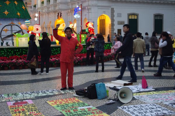 沿着大三巴前面的小路前行,会慢慢再不断分开成更多的窄小街道向周围蔓延。在不同的路口会有一些指示牌告诉你周围有什么景点,比如卢家大屋、主教堂、玫瑰圣母堂等地方。不过这些地方不是很好找,因为每条街上都是鳞次栉比的店辅和满满当当的人群,在一定程度上会让人分心不少。这些店辅也主要是针对游客卖一些纪念品、特色食品等也夹杂着有一些潮店。当你发现经过圣母玫瑰堂后,就可以看到一个相对比较开阔的空地,地上有漂亮的黑白相间波浪纹的地砖。这就是澳门最热闹的议事亭前地。在这附近还有喷水池、民政总署、邮电总局、仁慈堂等建筑可供浏览。特别是靠近民政总署这边,看到有一个精瘦的老头在地上摆满了大字报,旁边还一个大喇叭播放着熟悉的国际歌。看那些文字大概的意思是控诉澳门政府的一些问题。看到我准备拍他时,老头马上精神抖擞地举起右手握拳摆出很革命的造型。看来只要澳门政府一直这样宽容地让他“战斗”下去,他会活得很长很长地。