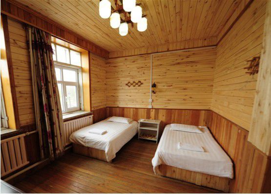 当室韦成为十大魅力名镇,被旅游者踏遍时,大家慢慢认识了这个离室韦不远的恩和,作为华俄后裔民族乡,这里不自觉的让人多了一份异乡情怀,我们不自觉的打量走来的行人,看看是否有俄罗斯人的特征,老一代人一看便知华俄后裔,但年轻一代便只有些许。若干年之后这些地方便不再有长着俄罗斯人的面貌说着一口普通话的华俄后裔了,华俄后裔其实也就是混血儿,是若干年前,俄罗斯人偷渡到中国,然后在中国扎根了的后代,这也充分说明我们政府对外国人的包容。如果以后世界没有国家之分,我们就不会对混血儿有那么大的兴趣了。在恩和我们参观了伊莉娜乡村俱乐部,跨过一座小桥,我们看到这座在树木掩盖着的纯木质结构的小二楼,这个时候似乎没什么客人,穿着制服的工作人员,在门口的秋千上自在的荡着,这里的秋千不同我平常接触的那种坐在上面比较低的秋千,这种估计有3,4米高,可供两人站在上面荡。挺想尝试一把,可惜秋千太受欢迎了。还是干正事,参观房间去了,房间都是木头的,地板、墙、天花板都是木质的,房间里简单的摆设,洁白的床单干净整洁,好想在这样的房间里趴在窗口发呆。从伊莉娜出来的时候,天已经变得灰蒙蒙的,气温骤降,可怜我身上衣正单,一咕噜的钻进车里。