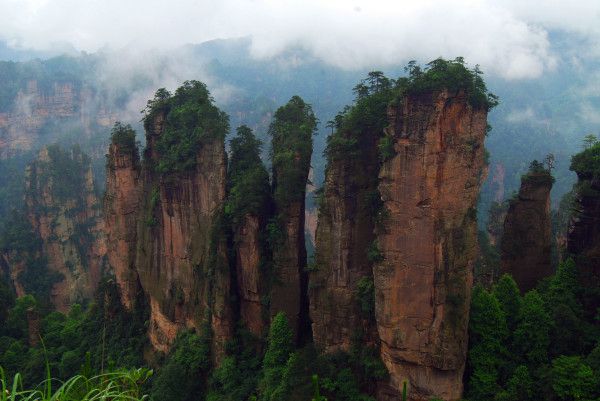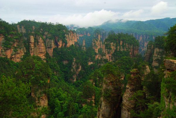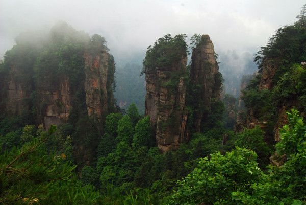 下山吃过午饭,大概时间尚早,导游让我坐在餐馆休息了近一个小时,12点多一点,我们向景区另一景点金鞭溪走去,进入景点天空转暗,刚接近金鞭岩就下起雨来,越向前走雨就越大,不知是没有景点或是景点被雨雾遮住,导游只领着我顺着溪边道路前行,我除了记住个金鞭岩外,也不知还有什么风景应该入目。大约三点多钟,我们就住进在武陵源预定的宾馆,洗个水温不太高的热水澡,上床睡觉,结束了当天的游程。正如导游所说,这种游览法很适合我这个年老者,可我觉得这种游览虽然是相对较为轻松,却不应该是我来张家界所期望的