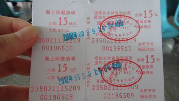 鼓浪屿来回船票