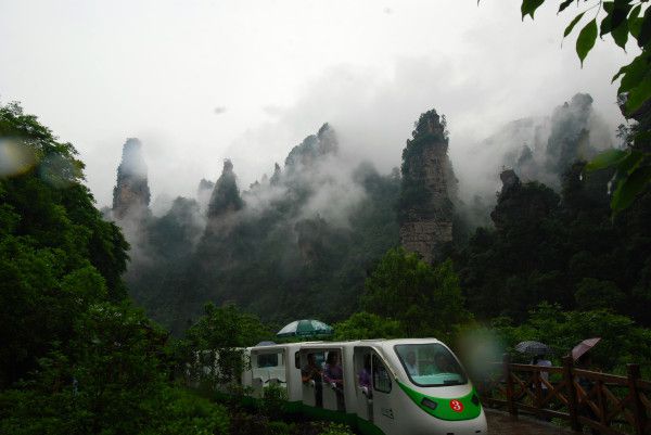 到张家界旅游需要一个好的天气,我通过查询天气通报,选择了此时出行,可这里的实际天气比预报向后推迟了两天,本该无雨的日子,老天偏偏不给面子,两天的上午还算过得去,可一到午后,雨就从天而降,下起来就没个完,有时还越来越大,很影响观光。无论有雨无雨,小伙子总是以路途较远,时间较长为由,建议我除观主要景点外,来去都乘坐自费交通工具(索道、小火车),如果有雨时他更是直接把我往这些乘坐点带,虽然我对此并不反感,但从他强调导游带团很辛苦的说道,后来在到达观景点不再陪我去观景台,而是约定地点等候我的做法,可以看出他的小九九,这样做难免让我失去了部分景点的游览。