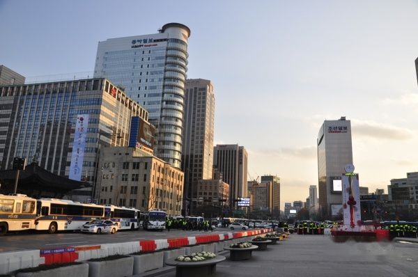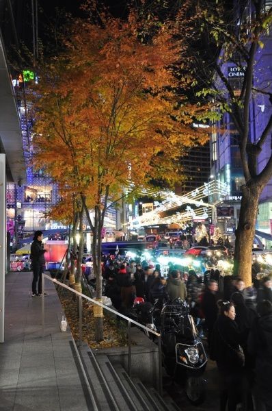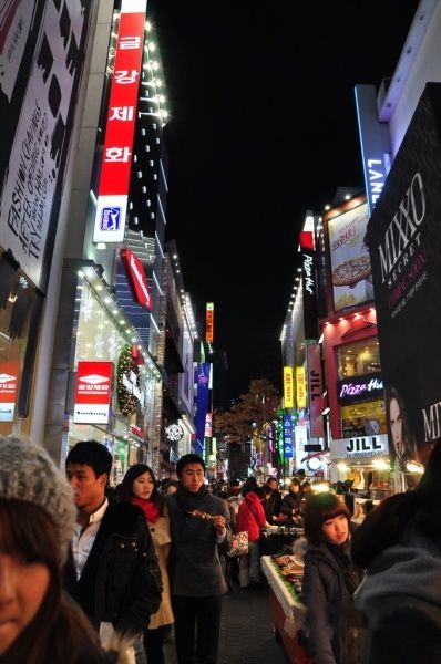 热闹非凡的明洞,因为是周末,我们还遇上了示威游行