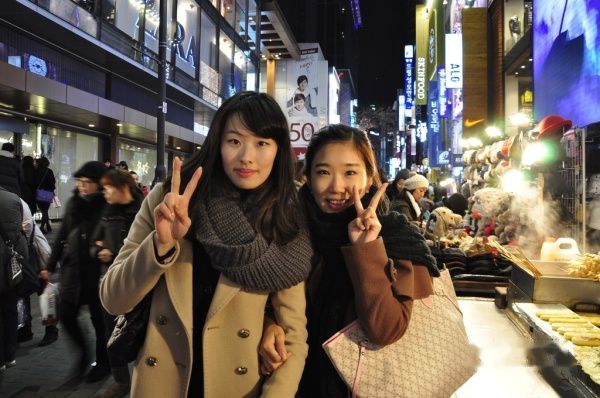 在买年糕滩的傍边遇到的两位韩国美女,学习中文的,所以我们聊得很开心