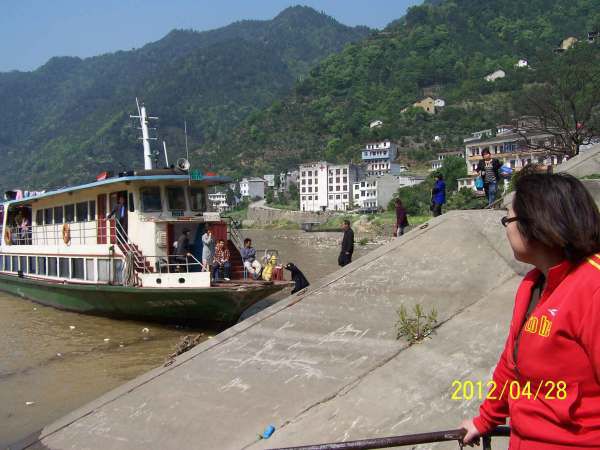这就是往来深渡与千岛湖的班车,不对,是班船,上下午对开各一趟。硕大的船一路开来,上上下下就十几个人,好不惬意。