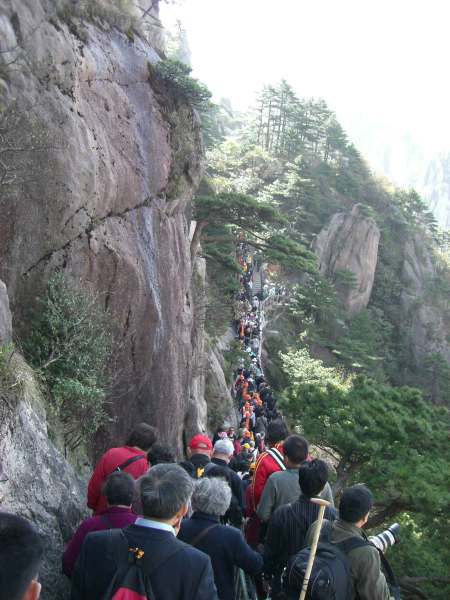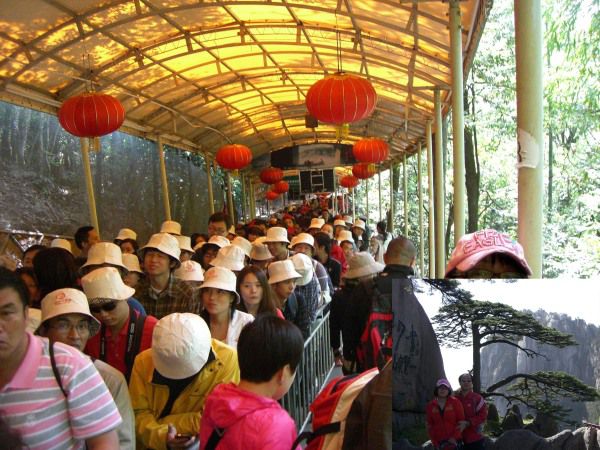 被推到迎客松前,拍几张照片后,坐上缆车下山喽!我的天啊,麦加朝圣也不过如此吧,你看看,黄山就是牛,一张门票几百块大洋也没挡住人们上山的脚步。这些人在慈光阁排队坐缆车已经排了两个多小时了。佩服。