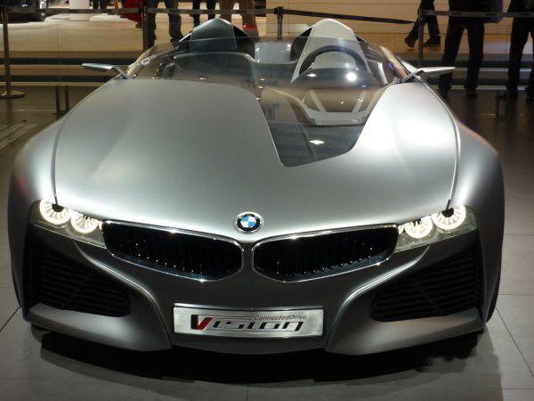 因为只剩下两个多小时的参观时间,实在顾不上细细品味各款车的精彩之处和车模的靓丽,也无暇欣赏各展台火爆的演出,更没心思参加得车模的有奖问答,只能暴走于各展馆的众多站台之前,匆匆一瞥各具特色的香车美女。终于,宝马的一款概念车Vision Connected drive,彻底击破了我的时间底线。充满想象力的完美流线型外形设计,就像来自于未来世界的金属大白鲨,威严的傲视着过往的世俗凡人。前前后后的饶了N多圈,流连忘返,真是越看越喜欢。终于明白了以前的一段广告语“男人,该有辆车的”。整个展会逛下来,似乎也只有雷诺的那款明亮的闪着耀眼的红色概念车DeZir可以与之相媲美了。