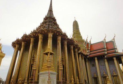 因为肚子饿了,所以就在大皇宫门口买了点东西吃,没有零钱,那卖东西的就叫人换钱,换钱的那人就往我手里塞苞谷让我喂鸽子,我喂了几次,结果最后被敲了一笔。看了无忧度假上面的注意事项我准备的很充足,穿着长裤长袖和拖鞋,一来到这里我就把拖鞋装进塑料袋里面用手提着。一座座贴了金箔的建筑,金光闪闪的感觉很华丽。在里面一边看着长长的壁画,一边听着那些旅行团的导游细细解说上面的故事,那感觉特别的有趣。