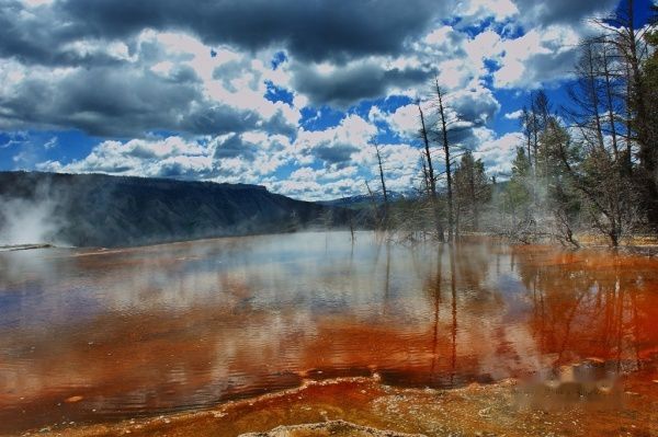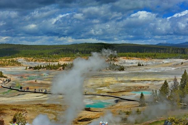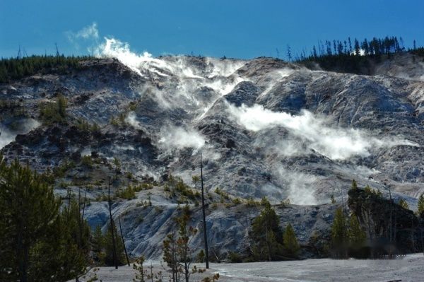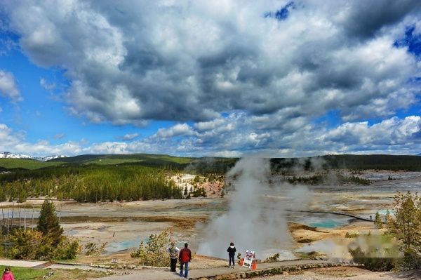 黄石成为国家公园的显著特征是地质方面的地热现象,这里拥有比世界上其他所有地方都多的间歇泉和温泉。沿8字形公路行驶,放眼望去到处飘散着蒸汽,真有些狼烟四起的感觉。
