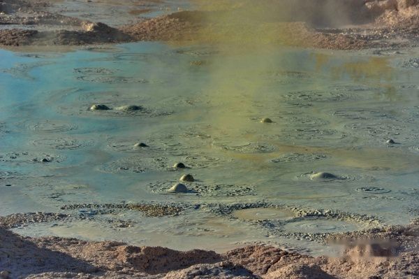在8字形公路西及西南为间歇喷泉区,更是遍布间歇喷泉、温泉、蒸气、热水潭、泥地和喷气孔。
