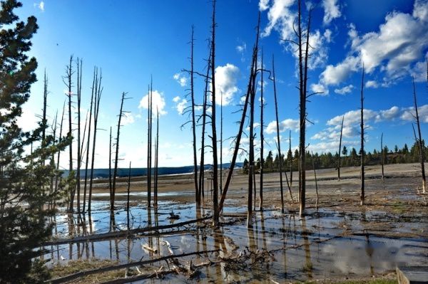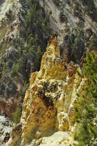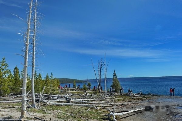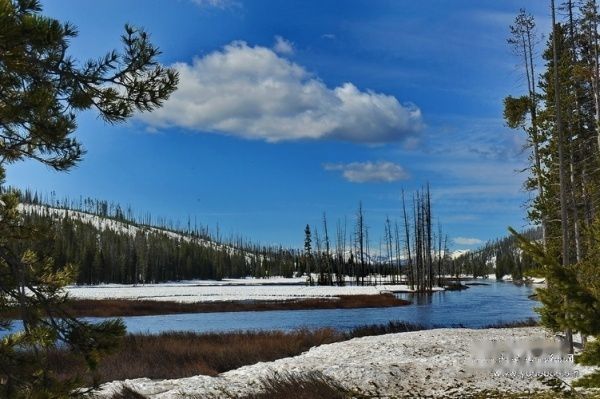 游黄石公园一天半也只能走马观花,要想看好黄石最少3天以上。黄石除了给人印象深刻的奇特地热现象外,就是它的纯天然的仍保持原始的自然状态的景观。沿公路看去,湿地,枯树,水泊,草地……。无不显示出荒野性,可以说处处是景。只可惜不能停车拍照。据说美国政府为保持原始的状态,曾让大火烧了一年,而不人工扑灭,让它自燃自灭。