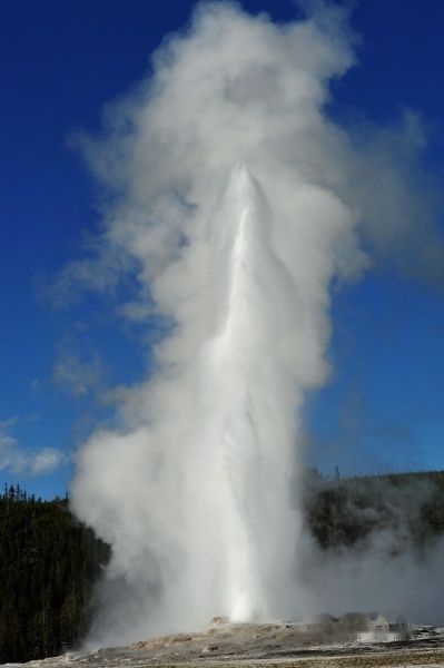 在8字型公路左底部就是著名的老忠实泉。现在大约90分钟喷发一次。到黄石的人都要看看它的喷发,每次也就喷发几分钟的时间。它是黄石最大的间歇喷泉了。但我觉得它逊色于新西兰罗托鲁阿地热喷泉-间歇泉。