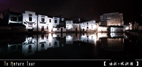 支好脚架,将相机快门设定到B门,连上快门线,用我的棒球帽遮住镜头,胖子拿闪光灯在前方那排民居前按六等分进行闪光。每次他到位后就喊声“好”,我就移开棒球帽,然后他进行闪光,待闪光完毕我立刻再用棒球帽遮住镜头并喊声“好”,胖子再去下个点进行闪光。这样来回折腾了好几次,直到将光圈、ISO组合值调整到最满意为止。出来的效果还真不赖,灯火通明的样子。呵呵,这该是我们拍得与众不同的片子吧!