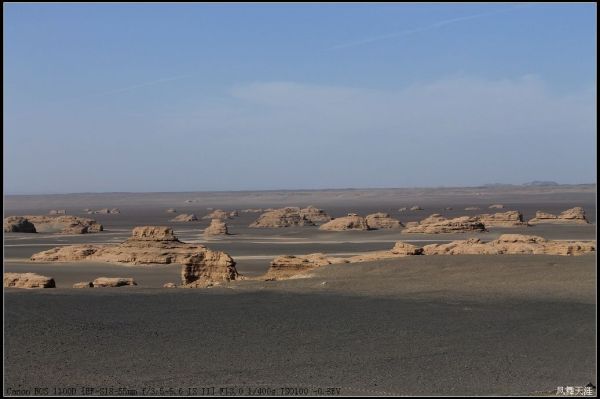 接近雅丹魔鬼城,路边已经有三三两两的形态怪异的石堆。心里面想:难道这就是雅丹,那就甭买票了,直接到前面欣赏就是。待到真正见到雅丹,确实被那磅礴的气势震摄了:密密实实数不尽的、千奇百怪的、大大小小的石堆耸立于戈壁上,在蓝天的映衬下,透着些狰狞。游览车经过一个个被赋予各种名称的石堆,发挥着各自的想象观赏这些奇异的石头,感慨大自然的造化之功。而进入雅丹腹地还需要另外付费包车,100元一人。既来之则安之,我们只能屈从景区霸道的条件,包车直驱景区腹地,期待观赏更加神秘的魔鬼城。开车的小伙子说只有在春季,风沙肆虐的时候才能真正感受到魔鬼城的魅力。这里曾经是罗布泊的腹地,我们所见的是河床下那些沉积岩,历经水流冲刷和风蚀,才表现出如此独特的地貌。游览车在一个个人为定义的石堆前停留,也仅仅留个影而已。游览的线路还在拓展,而我们只行进了不到3公里就已经到了尽头。想想有点不太值得,这个包车的价钱实在是太高了。