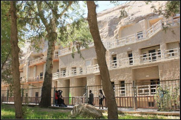 没有三毛那种特殊的待遇,不能独自对着壁画冥想。只能徜徉莫高窟,满目充满佛教色彩的塑像,满耳充塞着千佛的传说,拥挤的**,将我怀古情肠都冲刷得支零破碎。只有绿荫掩映下那石壁间千洞万孔的壮观,多少生出世间奇迹的感叹。遥想当年丝绸之路起点的繁华,入道漫漫丝路的艰辛,岂是这朝朝代代祈福的石窟能保佑的。