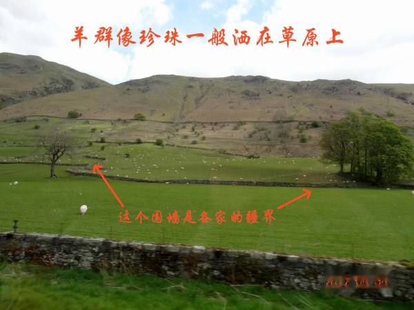 图:爱丁堡到温德米尔湖一路,羊群像珍珠般地撒在各家的草地上