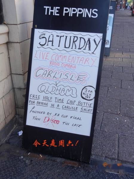 图:今天是周六,各家餐厅,酒吧及娱乐场所都打出优惠告示