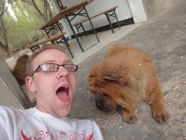 之后因为天气扬沙,张哥带我们去了敦煌青年旅社,那里有两个大松狮狗狗,一个叫丑丑,一个叫帅帅,超级可爱。