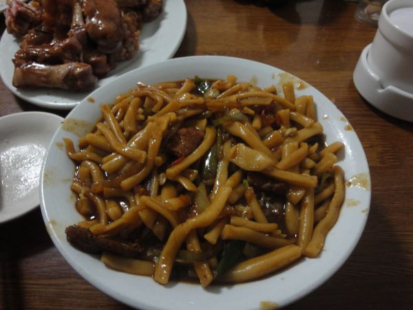 敦煌之旅就要结束了。张哥专门带了我去吃敦煌的“炒炮仗”,那个味道实在是太好吃、太难忘了!至今都想吃!!!!张哥还点了猪蹄子给我带着火车上吃。这顿饭是张哥请客的,我们都不好意思了!