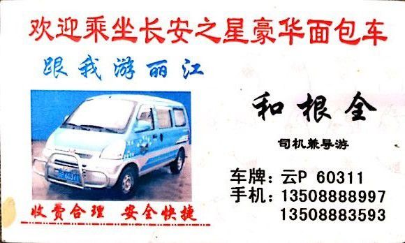 没啥说的,接触时间短,不好评价其为人,但这一面之缘感觉值得广告,也造福下后去者。建议去丽江包这种厚道的当地司机的车,遇到好的就会一路好心情,想怎么玩就怎么玩,想怎么拍就怎么拍,不会像我们一样。。。