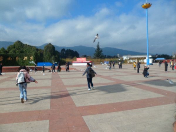 那天我早早就起了,大概因为是学校边的缘故,大家外面的商店也都开门了。我早早去吃了一个牛肉米线,里面还放了两小片薄荷叶,吃起来凉悠悠的,但是觉得没有食欲。后来我们到了云南民族村,到的时候,我们很兴奋的跑去追白鸽,其实去的这四个地方,都有很多的白鸽。在大门外玩了一会,因为从大门到民族村一路上,还有很多卖小饰品和特产的商铺,我们就去买票,票价90元/人,拿出法宝,45元/人,景区半价学生证真的很好用,嘿嘿...民族村里有很多族,一个片区的建筑就是代表一个族,西双版纳村离有个很漂亮的秋千,很多人都忍不住漂亮秋千的诱惑,跑去荡秋千。白族、彝族,纳西族...很多民族...里面的那个游览车,自驾的自行的,前面一个位置,后面四个位子,100元两小时,太贵了,电瓶的,200元两小时,太贵,没租。有些族里是不能骑着车进去的,得步行,大多数时间都是花在进各种族里面玩,要玩得尽兴,省钱,还是不租的好。在里面有很多卖东西的地方。后来我买了一盒普洱茶,10/盒,里面只有几小颗颗普洱茶。