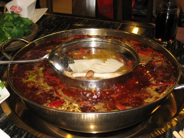 我们叫了份鸳鸯火锅底,纵观全店,只有我们这一桌是红白分明。殊不知在重庆,本地人都是点辣锅底的,鸳鸯锅底专门为我们这些异乡人准备的,惭愧惭愧!