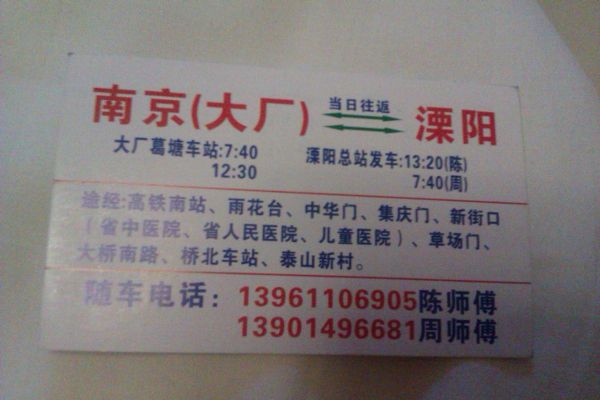 中午12点45分我到达了溧阳长途汽车站,准备乘坐下午1点的溧阳-南京汽车。12点55分,检票上车。有个插曲,刚上车后一个司机模样的上车询问我们是否有直接去南京南站的,可以帮我们换票,我想到直接到南京的车子是到东站,到时候还要坐10路到火车站东广场换乘地铁1号线辗转到胜太路,不如直接到南站然后只有3站路就到了,果断换票。于是等到1点20,车子终于开动了。2点50分到了南京南站,其实就是离南京南站直线距离300M的地方,不过我觉得挺好的,省了不少时间。到了南站乘坐1号线到胜太路,1号口出站,到路对面乘坐东铜线大巴到金城学院站(5块),下车继续往前50米就到了我之前预定的南京欧泰商务连锁旅店,我订的是168元的圆床房,还行,老板听说我是明早8点10分的飞机答应在早上6点20分叫我出发,包接送,这才是关键嘛,好了,先流水至此,明日再续。