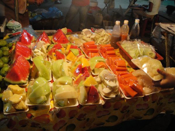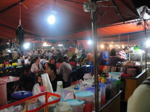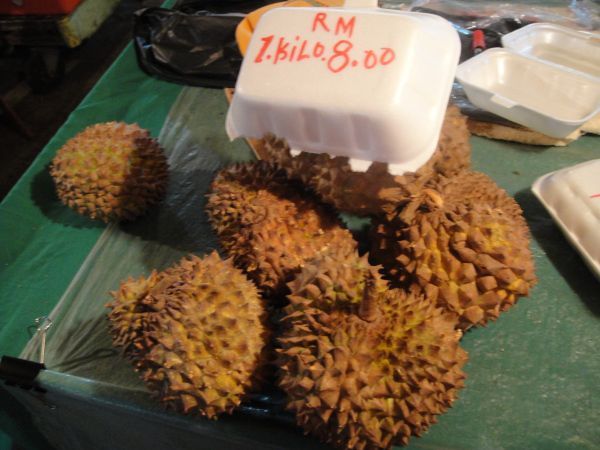 吃完后就没有目的的随便走走,看到不夜天酒楼门口的龙虾,一直走过handcraft market,都是卖些手工制品,可以考虑买一些作为手信。到了wet market,有卖海鲜和水果的,还有一些类似大排档的食肆。看到河豚比较感兴趣,很大一只,那里的海鲜都是king size的。我买了芒果和榴莲回酒店吃,rm20/6个芒果,rm5一小盒榴莲三四小块。这里的榴莲好小不像国内的那么大,不过超甜。