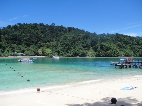 Day2:睡到自然醒,然后到酒店楼下富源吃早餐。两个人才RM12.8,好便宜。吃完后打的(RM10)到Jesselton Point码头到对面东姑阿都拉曼公园,公园由五个岛组成:sapi,manukan,gaya,mamutik,sulug,一般上sapi,manukan的人比较多。我们只上了Sapi岛,费用(RM44.2/人):往返一个岛船费RM17(两个岛27)+公园门票RM10+税RM7.2+潜泳镜RM10,回程时间4:00pm会备注在票根上,最好和售票的还有下船前再确认一下。在码头一边拍照一边等集中了7.8个人一起乘快艇上岛,十几分钟左右就到了。我们在岛上就是浮潜,还有其他水上活动,感兴趣的话在码头买票的时候可以咨询。岛上有免费的更衣室,洗手间,冲凉房,还有快餐店和小店提供食物和饮品。一般游客都是浮潜,上午吃早餐买了面包用胶瓶装着喂鱼,鱼群就会游到身边。珊瑚比较刺脚,建议还是要买脚蹼(RM10),码头或岛上都有卖。岛的面积不大,注意一下回程船的时间合理安排一下在岛上的活动就ok了。