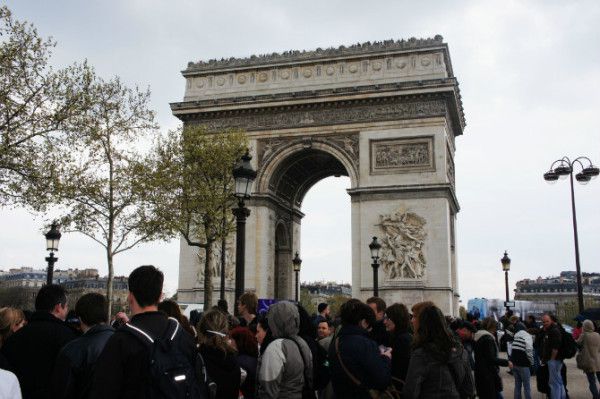 凯旋门下还有一个无名士兵的坟墓,常年供奉花圈,还有圣火常明!这是一个国家对自己士兵的尊重,当然这里常年有士兵站岗。