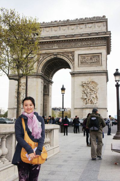 法国梧桐,可是我觉得这些梧桐也没有大到可以遮阳的地步,可能是因为以前家乡太多梧桐树的缘故,我就觉得没有什么特别美丽的地方。在香榭丽舍上,我在Lancel买了个包包,主要太喜欢那个颜色,湖蓝色镶紫红的边,大爱! 另外就是带着个朋友买