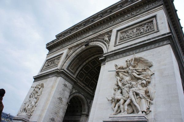 不过凯旋门还是有自己的艺术价值的,光是上面的四个大型浮雕组都栩栩如生,很有号召力。 四个浮雕的主项分别由两位女神和两位头戴盔甲的勇士担当,分别是《