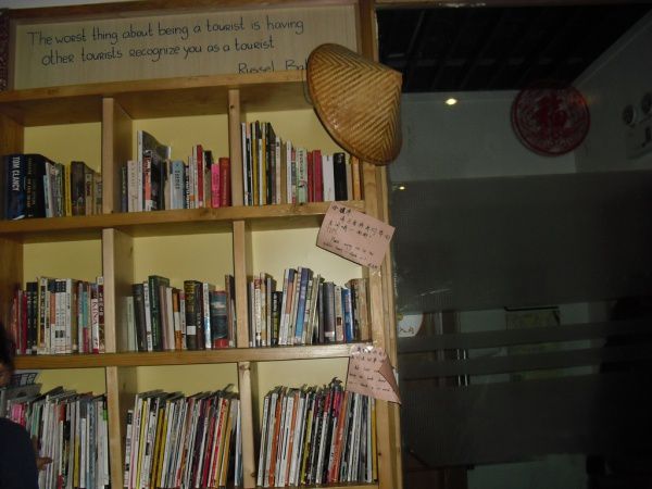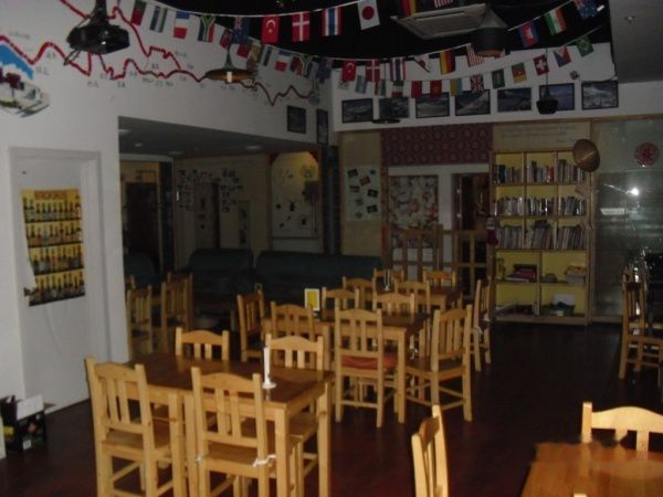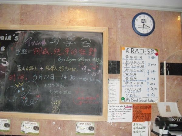 这家店是在物资大厦的六楼,一出电梯就可以看到前台,布置和其他的青年旅馆没多大差别,都是伴着古典的欧风,夹杂这怪怪的中国风。在和老外“周旋”的兄台貌似没空搭理我,我识相的坐到一边,等候传唤。大约五分钟后轮到了我,我定的是八人间,男女混住那种,到了才发现周五的生意甚是“嚣张”,我不得不被调房,这纠结的过程让我汗颜,最终我被分到了一处六人房。