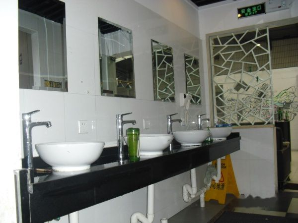 八人间和六人间都没有独立的卫生间和浴室,因此我要去公共浴室洗去一天的疲惫。浴室是一间一间的,同厕所设置一般。门口有洗漱池,倒也方便。