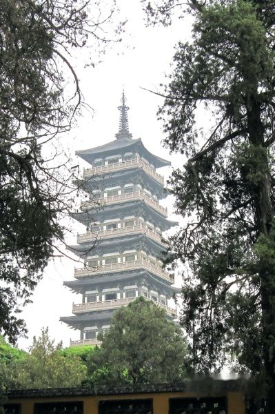 鉴真纪念堂的东面是栖灵塔。栖灵塔在历史上名气很大。唐代大诗人李白、刘禹锡、白居易等都曾登临此塔,赋诗留念。可惜唐末毁于一场大火。现在的塔重建于1995年,塔有九层,高70米。