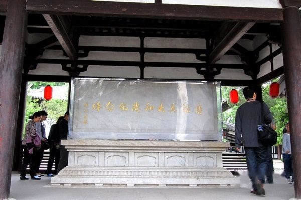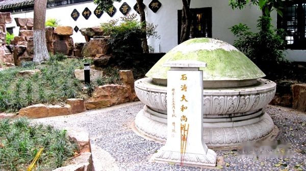 大明寺内还有一处人物胜迹,那就是去年12月刚落成开放的石涛和尚文化园。石涛是明皇室后裔,明亡后遁入空门,开创了扬州画派,在中国绘画史上有崇高的地位。何园片石山房内的假山就是石涛设计的。石涛墓在大明寺平山堂后,由于年代久远,确切地址已不可寻。目前重建的墓区内,唯有经幢是石涛墓遗留下来的原物。
