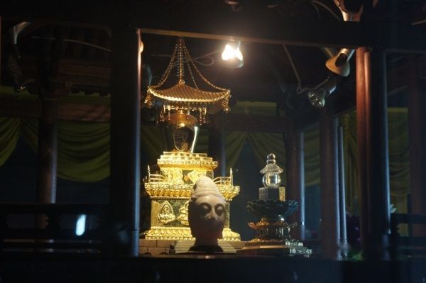 塔的底层免费参观,登塔要另外买票,20元1张。我个人觉得这个钱应该化。塔里珍藏的文物值得一看,塔顶视野开阔,可以俯瞰瘦西湖和扬州市容,凭票还可以到钟楼敲三下平安钟。登塔的楼梯比较宽,上去和下来的人互不干扰。登上塔的第二层,迎面是一个高大的仿唐佛龛,里面供奉6粒佛祖舍利。当年鉴真带了一批佛祖舍利到日本,被日本视为顶级国宝,2003年,日本唐招提寺长老将其中3粒回赠给大明寺。这3粒佛祖舍利现供奉在佛龛的水晶瓶中。另外3粒佛祖舍利分别为扬州居士余文斌、台湾大敬法师所赠,现供奉在佛龛的金塔中。佛龛中的白玉佛首也是一件稀世珍品,这件白玉佛首是西晋年间的,距今已有1700多年历史,目前市场价约在3.5亿至4亿元人民币,原为日本著名佛学专家池田和夫收藏。2007年,池田和夫将珍藏和供奉了30多年的西晋白玉佛首无偿捐赠给大明寺,这些都堪称是大明寺的镇寺之宝。