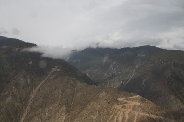 正在拍路牌,一回头,意外地发现两山之间出现一条完整的彩虹,让我们这些多年没见过彩虹的人一阵狂喜……