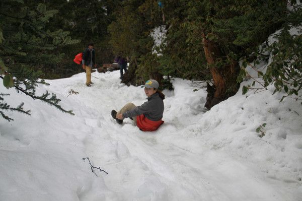 雪很厚,下坡的地方我们是这样下去的,是不是很好玩?