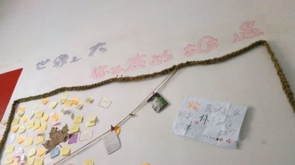 第二天早上我们准备退房离开时,天空却下起了绵绵细雨,似乎是想将我们留下。一看离退房限制的12点还早,我们就开始参观整个驿站。一楼有休息室,舒服的红色沙发隔着玻璃窗户,来上一杯咖啡,随着慵懒的音乐,尽情享受在都市中所未有的闲静。酒吧里则是不一样的装饰,石砌的墙壁挂着LOMO风格的照片,很有艺术气息,中间放置了一个台球桌,有可能我们去的时间比较早,只有吃早饭的人,没有人在打桌球。出酒吧一转角就能上到二楼,楼梯的墙壁上贴有各方朋友的留言,另一面墙则是各种涂鸦,很潮。但真正到了二楼,风格又变成了田园风。刚才看到的涂鸦似乎是小小的叛逆。
