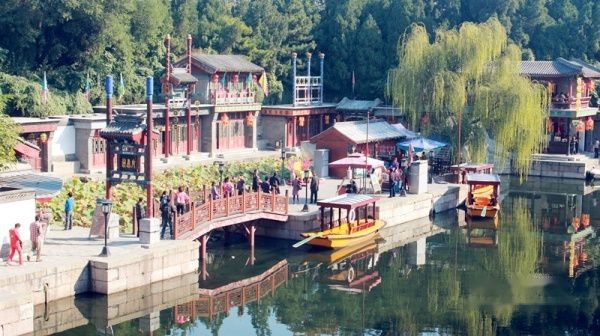 颐和园不愧为著名的皇家园林,我们是由北宫门进入,然后租了一只自动解说器。一进门,便仿佛置身于江南水乡,这里就是苏州街了。