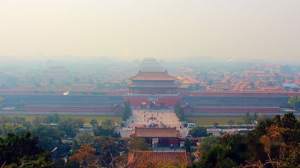 登上景山公园最高处,俯视故宫,真的很恢弘,但是当天雾气很大,照片也不是十分清晰了、