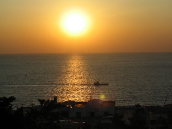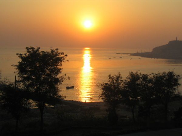 我们坐在沙滩边扔石头看海聊天,两个字,惬意!我们4点钟到了九丈崖,晚了一点,6点钟到崖边看了日,很美了。这里的风景非常好,崖边吹风看海,和刚才亲近海水的感觉又不一样了,而且这里的黄百合更多更灿烂。我是觉得这里的崖型很适合攀岩,可惜没有开发。但是还是非常美