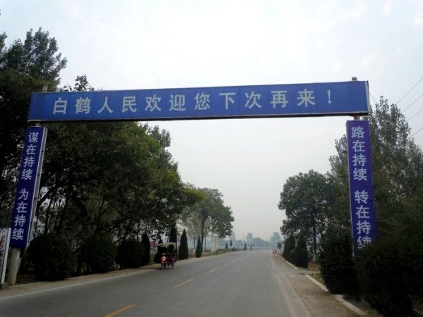 向东往会盟镇方向骑行不远,来到一个叫丕盛凹的小村子,从这里往北走,有一条路可以通往白鹤镇。下了一个小坡,穿过焦枝铁路就来到了白鹤镇。路两边的农田里人们正在进行繁忙的秋耕,希望明年又是一个丰收的年景。