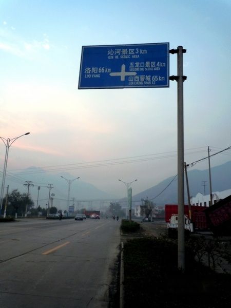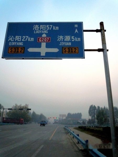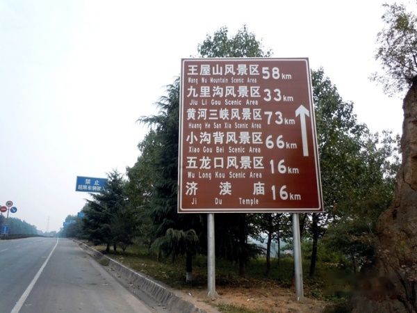 过了黄河就来到了吉利区,出了吉利区向北前行没多远,就进入了济源境内,济源境内的三个大坡先给来了个下马威。路边上路牌上写着去往各个风景区的距离。让人纳闷的是,沿途看到好几块这样的路牌上写的到五龙口的距离都是16 公里,也不知道离那里到底有多远。