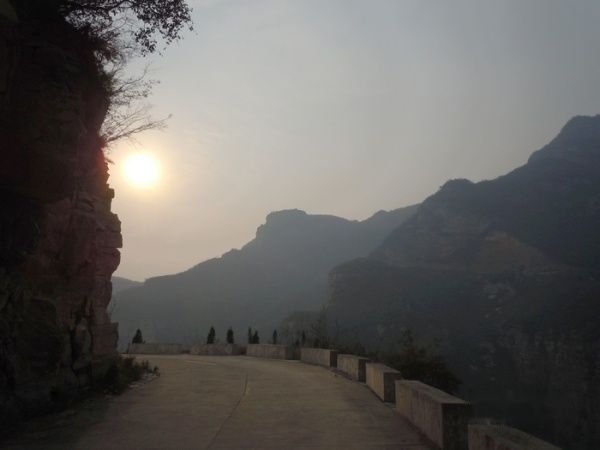 因为时间的关系,在村子里匆匆忙忙的看了看,只在村子里呆了不到半个小时就赶紧骑车往回赶,于15点30分开始放坡下山。奔驰在那太行山中险峻的山岭之中,看着那太阳西下,真有一种落日余辉,残阳如血的感觉,一种沧桑的感觉不禁涌上心头.....